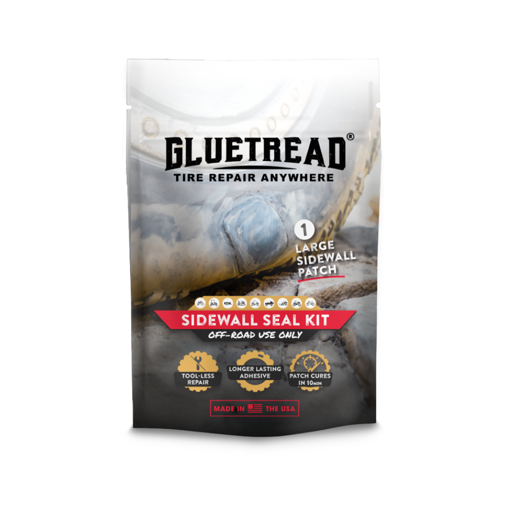 There are three main types of GlueTread Kits: Standard Comprehensive Kits, Comprehensive Kits with Inflation, and Sidewall Only Kits