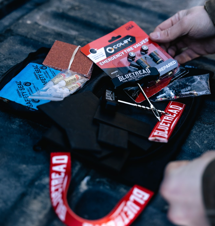 The GlueTread Expedition Kit is your go-to solution for tackling ANY tire damage you may encounter on the trail. Whether it’s repairing a sidewall, replacing a valve stem, or plugging a puncture, this kit has everything you need to stay prepared for the unexpected.